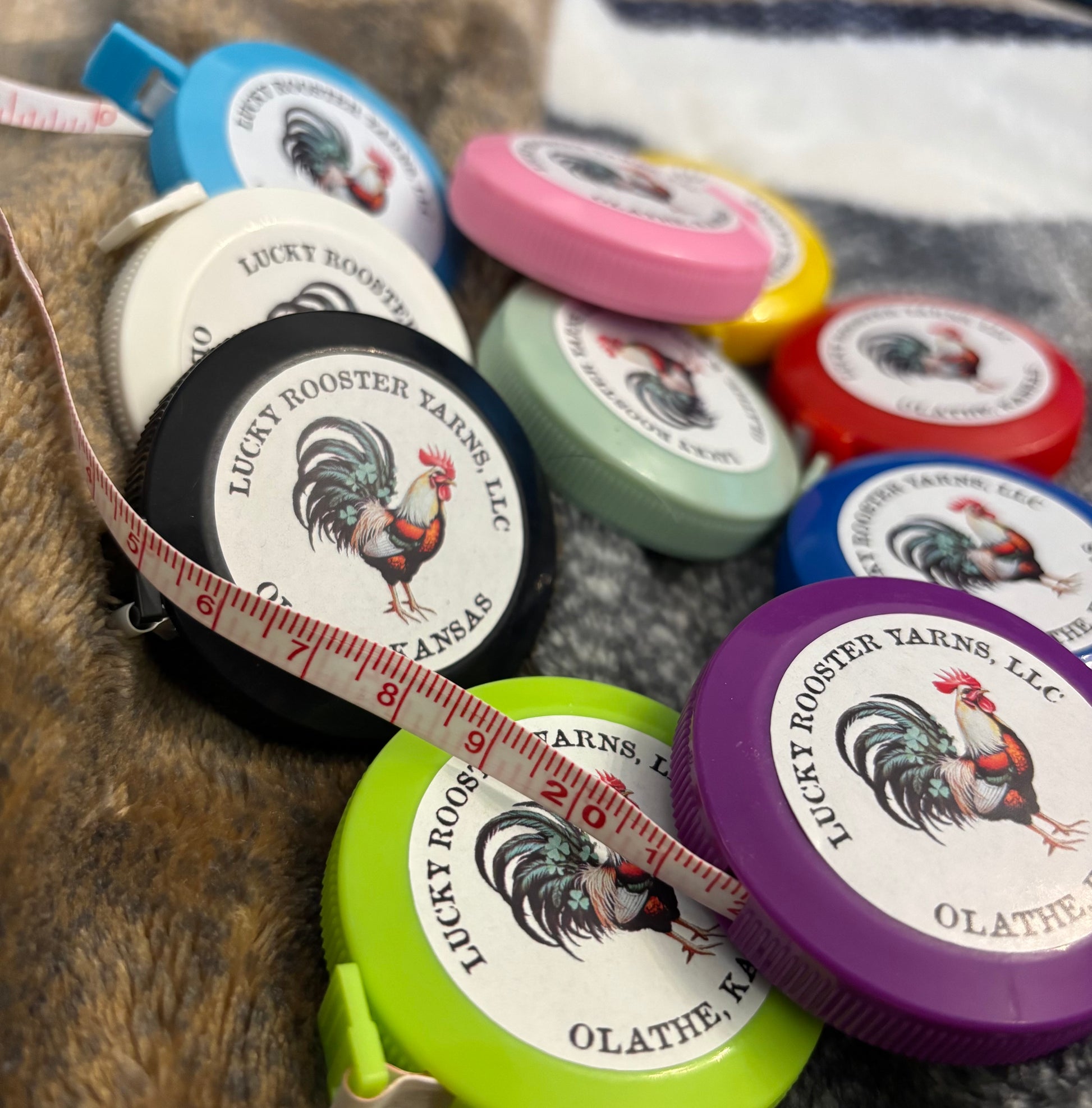 A 60 inch tape measure in a plastic round case. Pull out what you need, press a button to retracct the tape measure into place. These handy little gadgets are great for the project bag! Specify color choice when you place your order or say, "surprise me!"